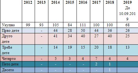 Broj rođene dece u periodu od 2012.godine do 10.09.2019.godine